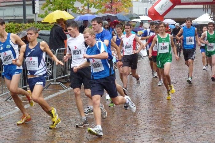 Bei vielen Regen-Veranstaltungen war es in diesem Jahr so, dass "komischerweise" nach dem Damenrennen die Niederschläge aufhörten und die Herren bei eigentlich guten Verhältnissen laufen konnten. Diese Situation hatten wir im Frühjahr öfters. In Algund herrschte in diesem Punkt aber Gleichberechtigung; ganz im Gegenteil, nach dem Herrenrennen begann er erst so richtig zu schütten. Zum Glück waren die Veranstalter gut gerüstet und konnten die Preisverteilung ins unmittelbar angrenzende Vereinshaus verlegen.
